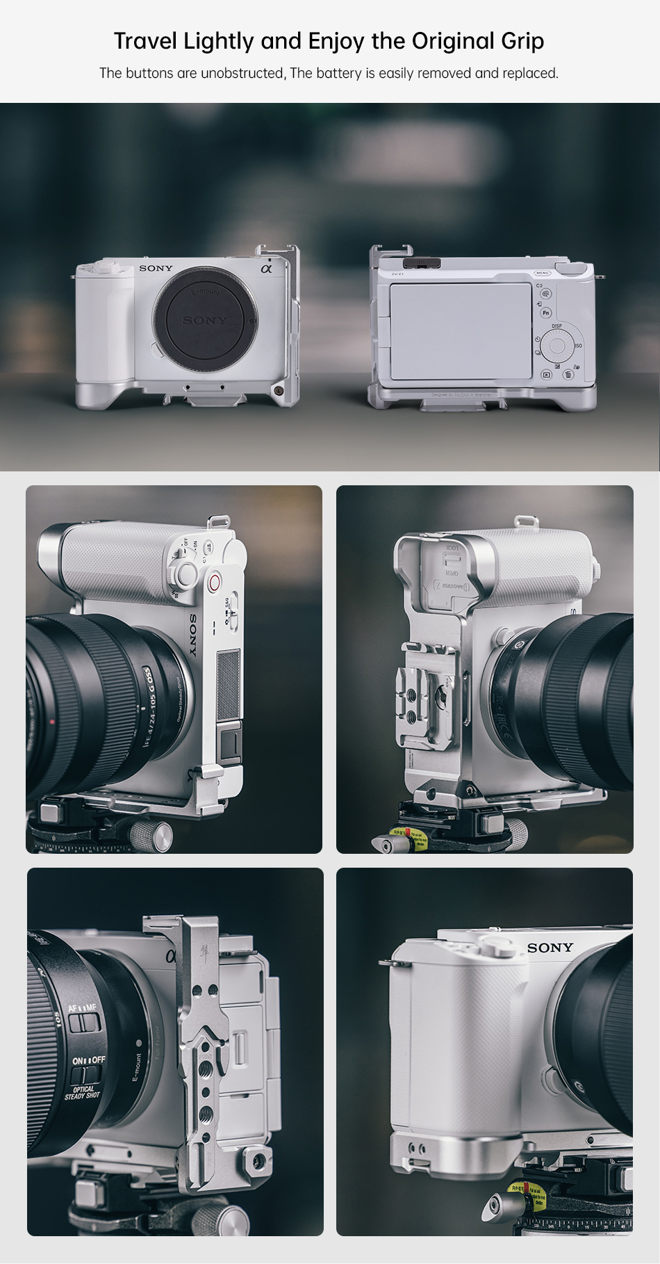 Camera modeling and high customization allows it to fit the camera perfectly, so that any buttons on the camera would not be blocked and battery removal would not be affected. Make shooting always easy.