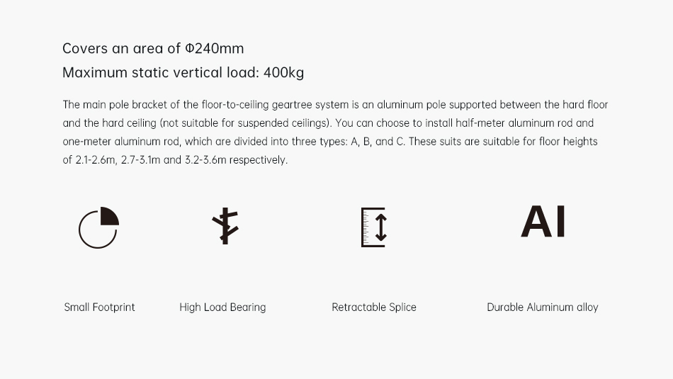 FALCAM GEARTREE Extension Rod for Tripod Aluminium tube with 3/8 threaded hole at the bottom, height 50cm, fixed on the tripod by 3/8 screw, Suitable for interviews, multi-scene switching, and following shooting, rich collocation, infinite tripod creativity. Specifications Color Silver White Material Aluminium Alloy Dimension 55*55*560mm Weight 0.7kg Packing Weight 0.9kg Parts Extension Rod for Tripod*1 Wrench*1